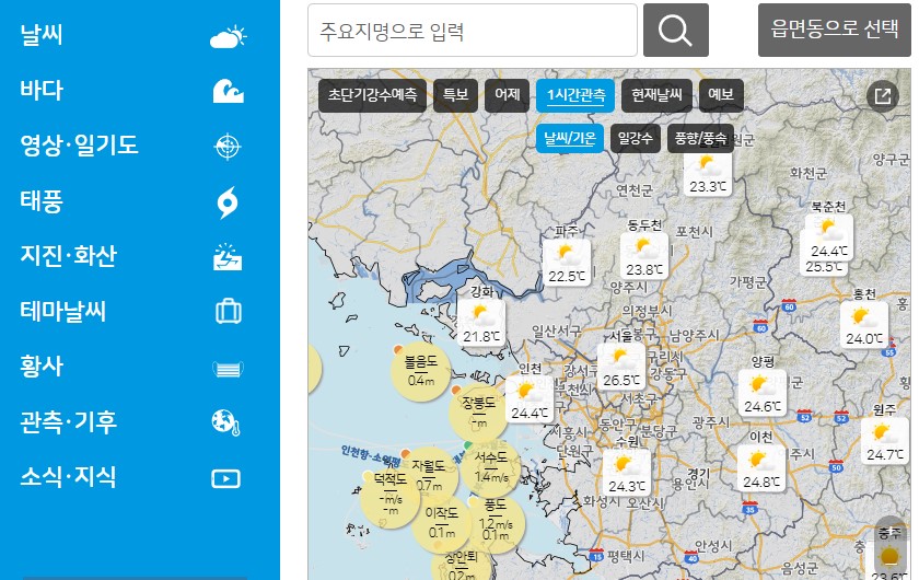 위에서 안내한 각각의 예보 제공사 홈페이지에서 실시간 시간별 날씨 확인하실 수 있으며, 사진을 통해서도 접속 / 검색 가능하오니 참고하시기 바랍니다.