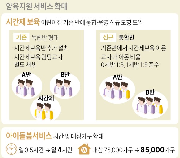 또한 맞벌이 가정등을 고려하여 아이 돌봄 서비스도 내년부터 제공 시간과 대상이 확대되는데 맞벌이 가정에 많은 도움이 될 것 같습니다.
